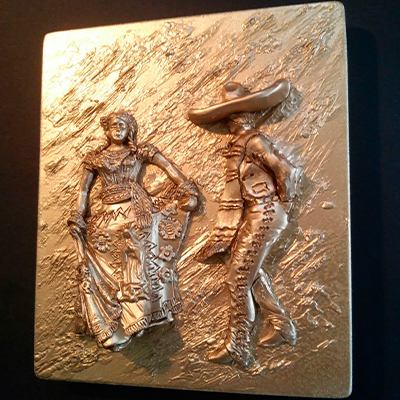 Estas son esculturas elaboradas en resina terminado bronce o a colores, o con baño metalizado. En alto relieve.